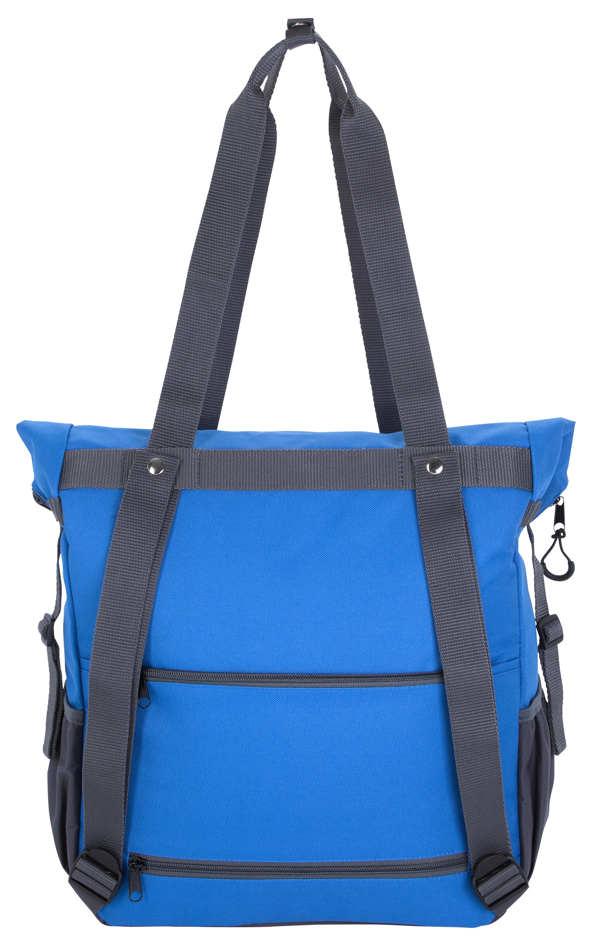 Easily transport your items your way with this adaptive totepack Made from RPET materials it includes easypull Oring zipper pulls multiple front pockets for better organization and easy access adjustable back straps that allow you to use it as a backpack and adjustable adaptive straps for easy attachment to any kind of chair Additional features include two side zippered pockets daisy chains for additional attachments compression straps at the sides interior padded laptop and tablet sleeves a fully padded backside and straps with loops for attachments
