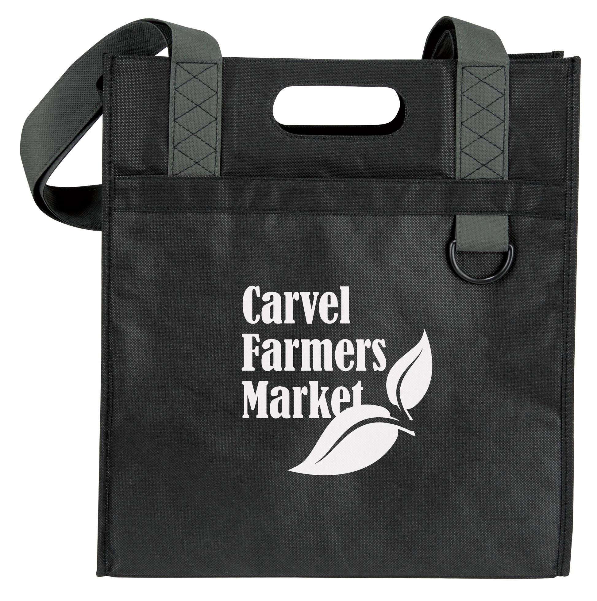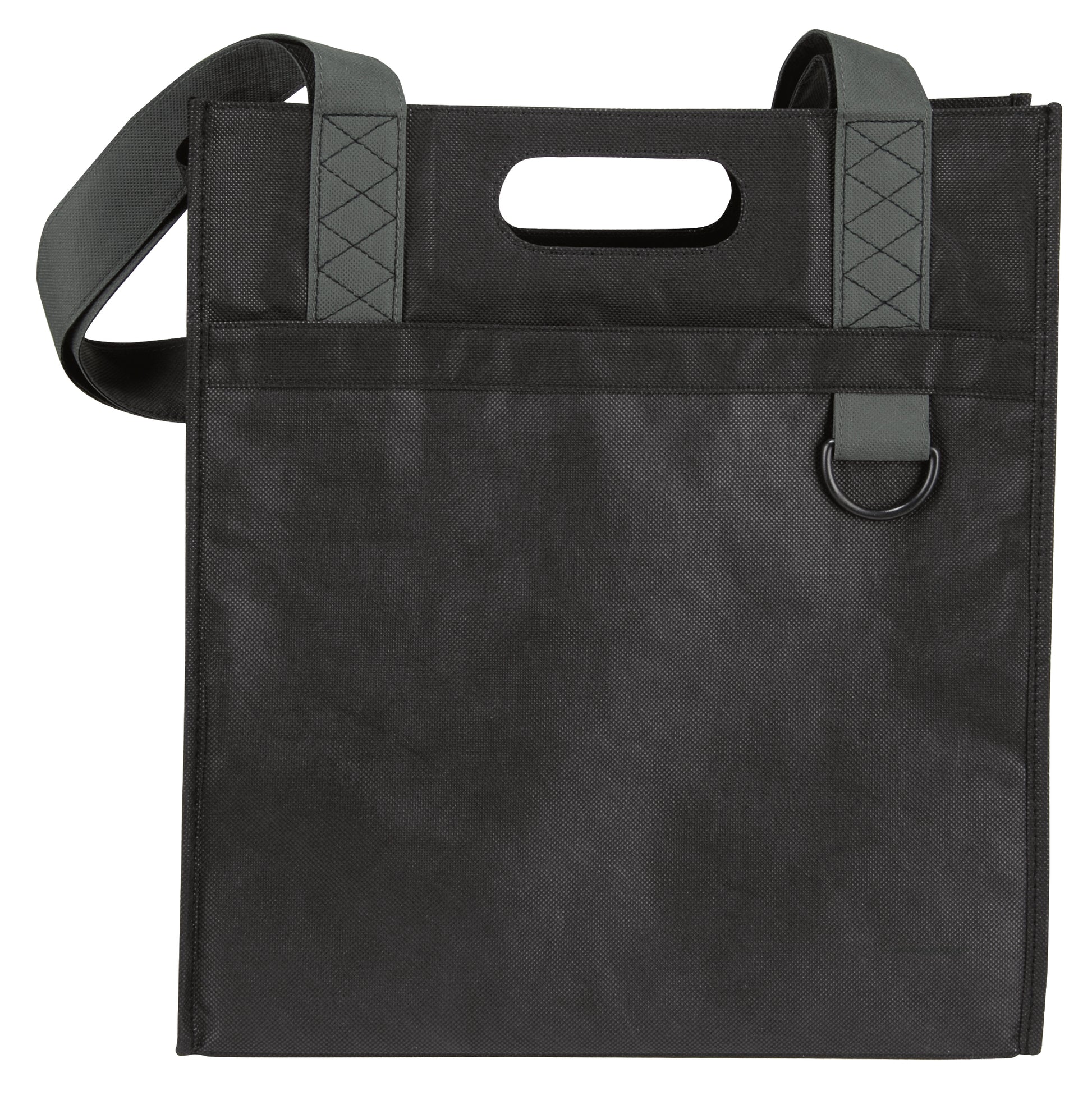 The perfect tote for your shopping or trade show needs This tote is equipped with a front slip pocket DRing boarded bottom and shoulderlength handles boarded hand carry