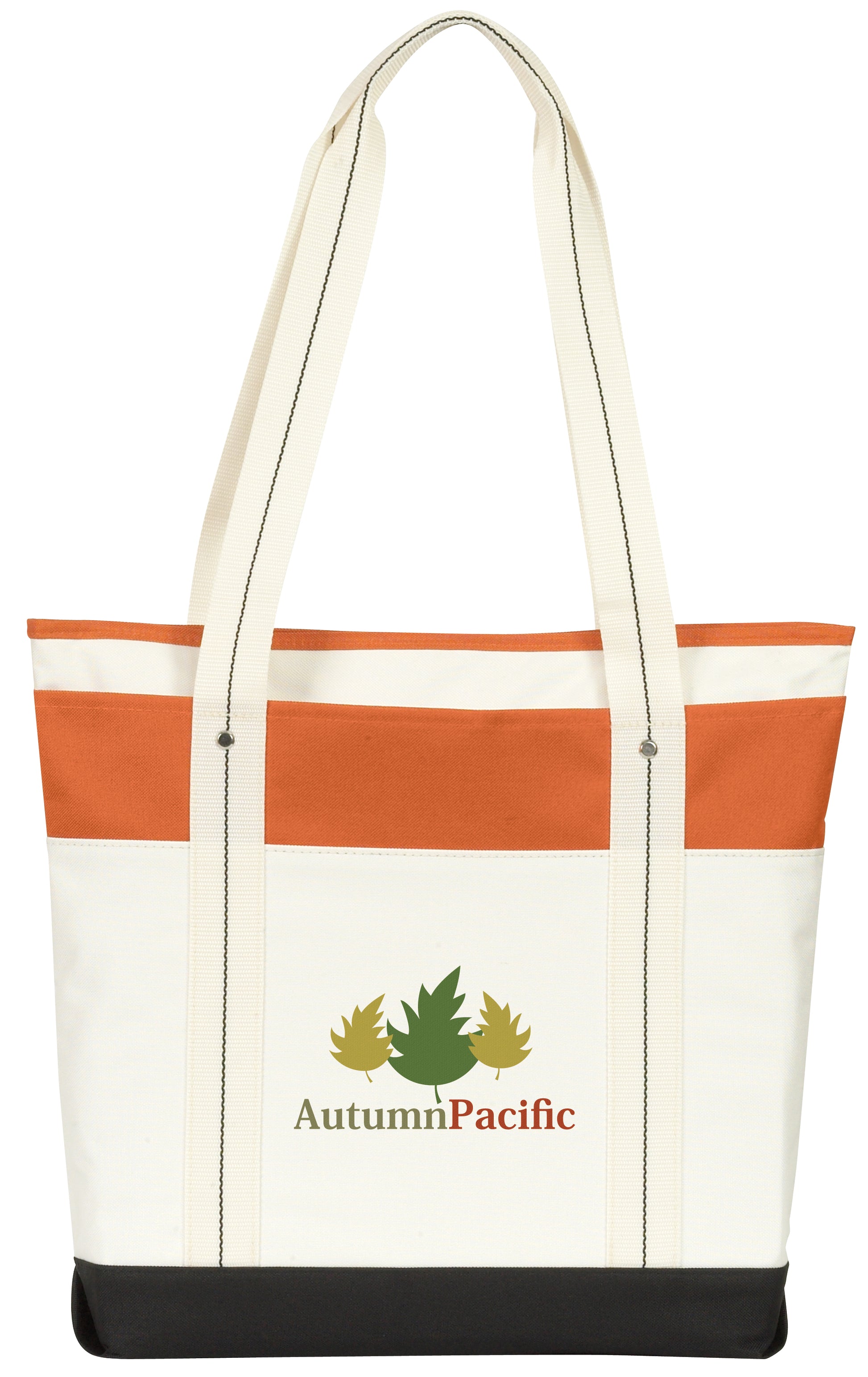 A strong vertical top band gives this classic tote a bold look Its zippered main compartment is large enough for all your essentials and shoulderlength handles make it easy to carry