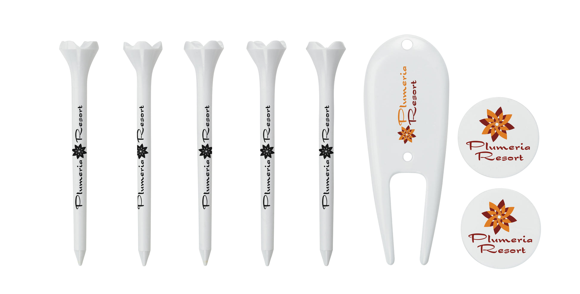 A triedandtrue golf promo that maximizes your brand exposure This kit includes 5 imprinted evolution tees 2 imprinted quarter marks and 1 imprinted divot repair tool in an individual polybag Great for tournaments outings and course giveaways
