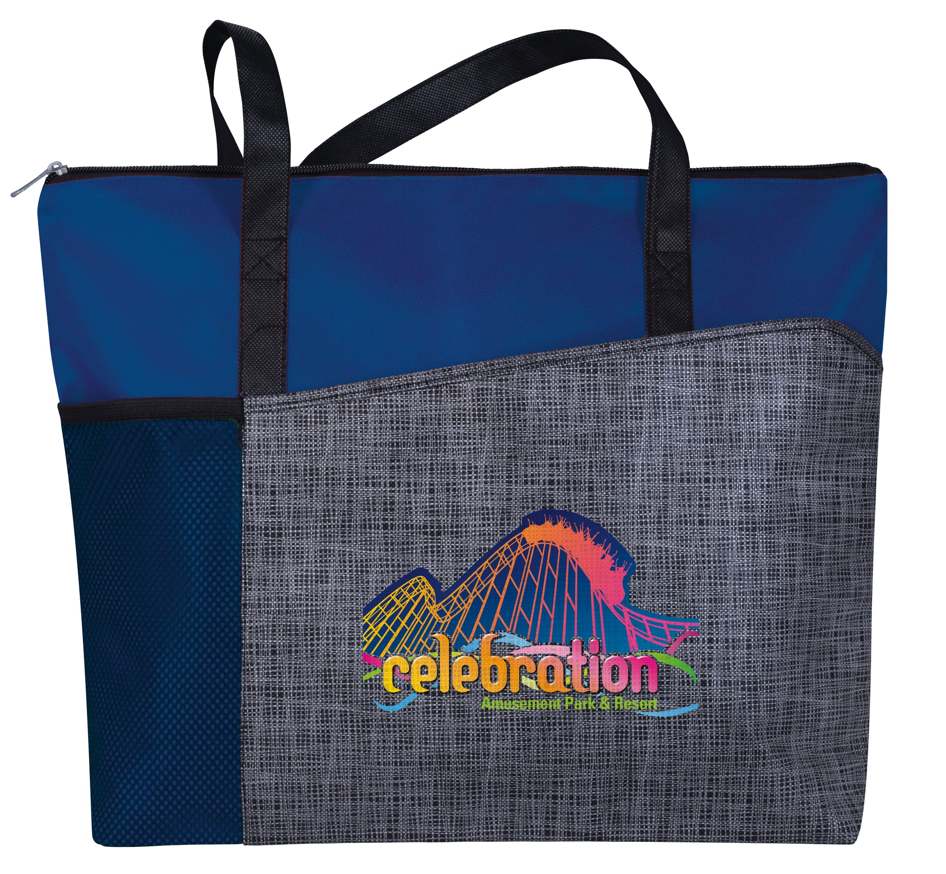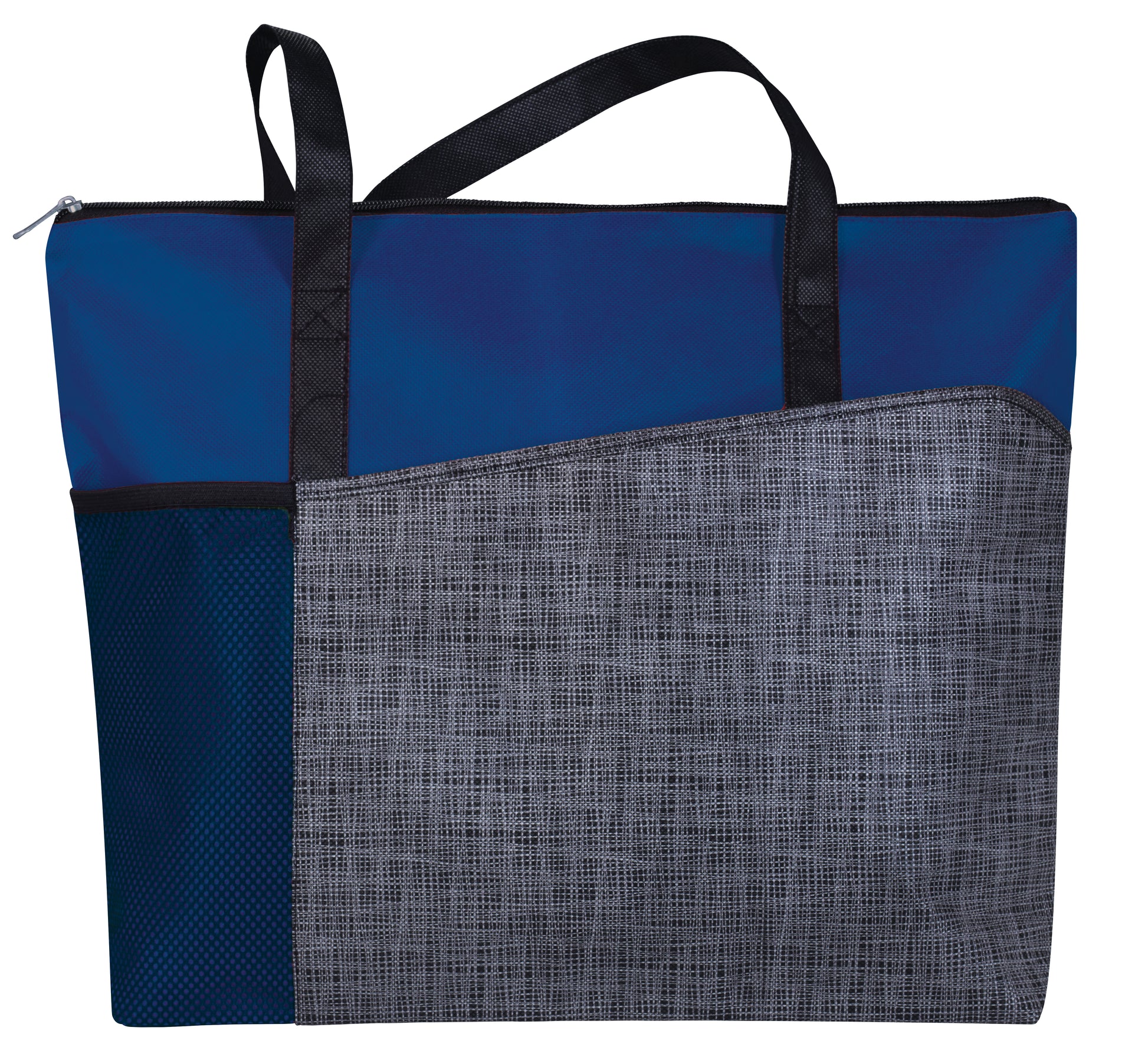 A patterned accent panel adds a pop of interest to this modern tote Practical features including shoulderlength handles a mesh water bottle pocket and a large zippered main compartment will make this your favorite everyday bag