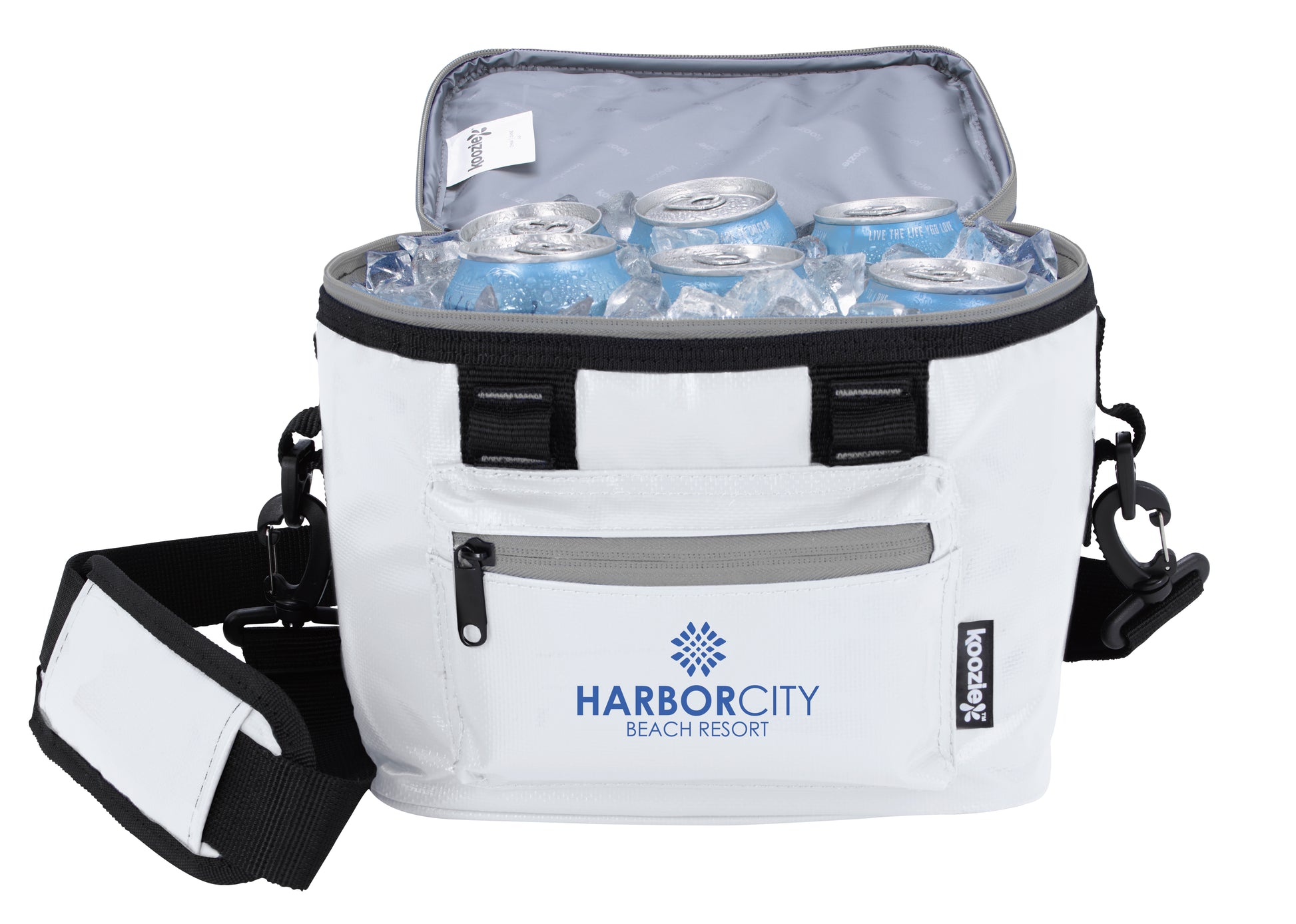 This cooler is great for carrying your lunch or up to six cans of your favorite beverage Its made of waterresistant tarpaulin fabric and features a main zippered compartment and a front zippered pocket that provide ample storage space for your items Theres also plenty of room for ice to keep everything as chill as you want The wrapped carry handles and padded shoulder strap allow for easy transport