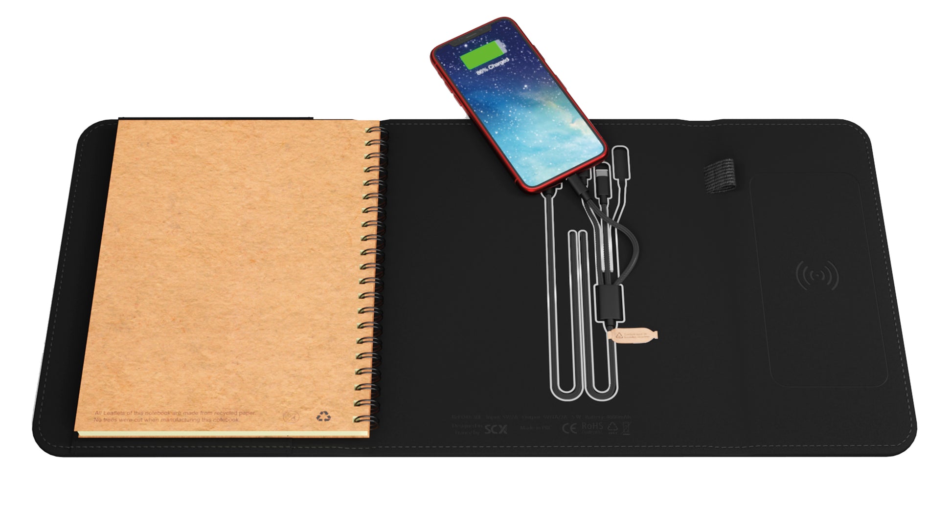 SCX Innovative Design Wireless Charging Notebook A5 with Power Bank 4000 mAh-32507
