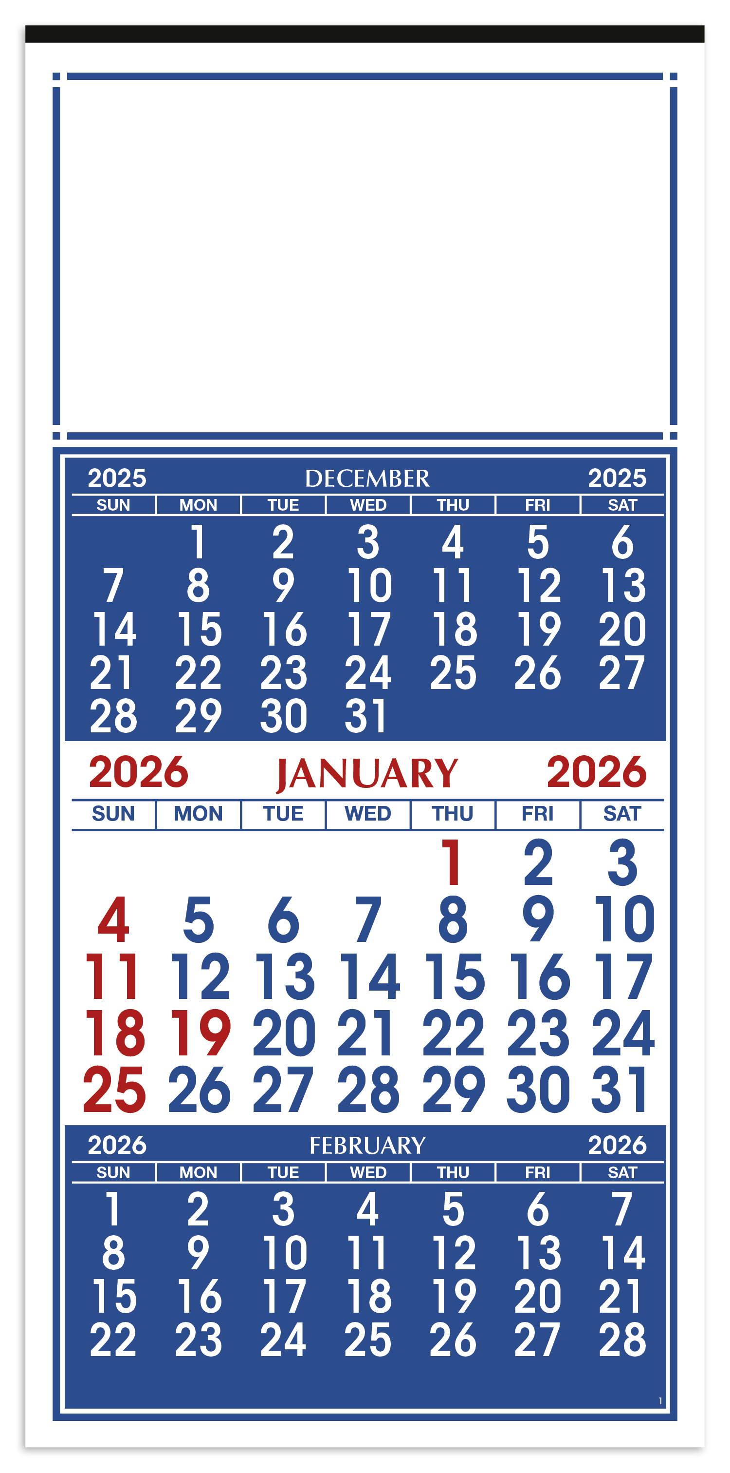 This commercial calendar provides a continuous view of past present and future months at a glance making scheduling and planning easier than ever The previous and upcoming months are displayed in blue allowing the current month to stand out in white for quick and clear reference The SFI label means that materials used for this product have been responsibly sourced