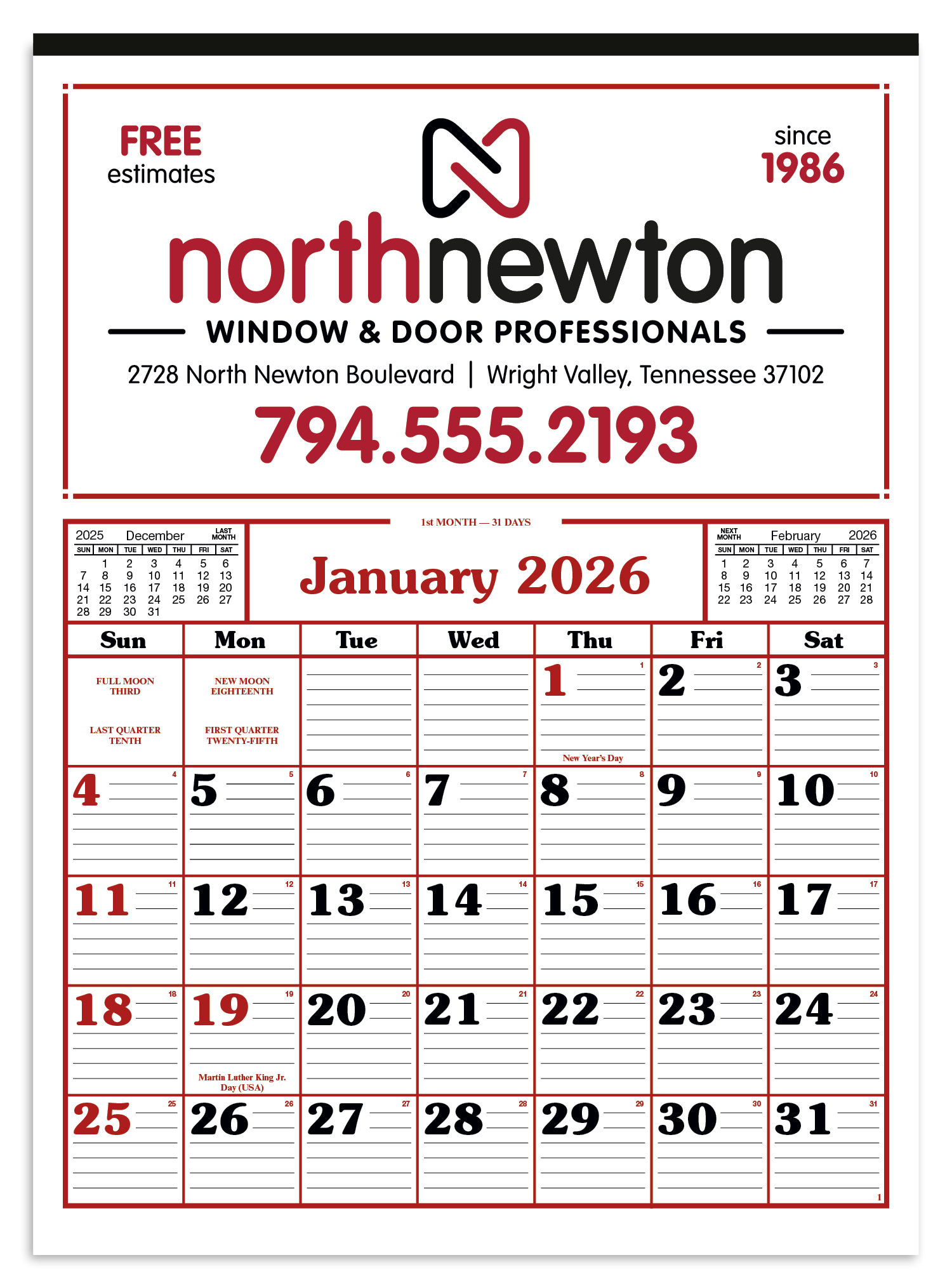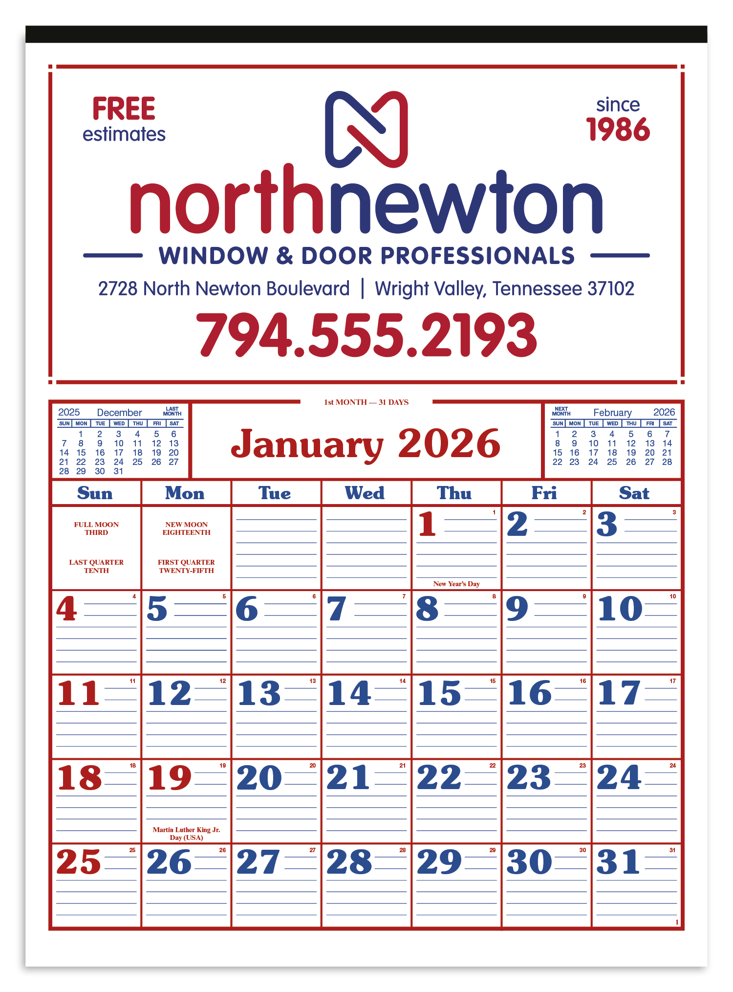 Skinner Kennedy Commercial 12Sheet Calendar-86-E