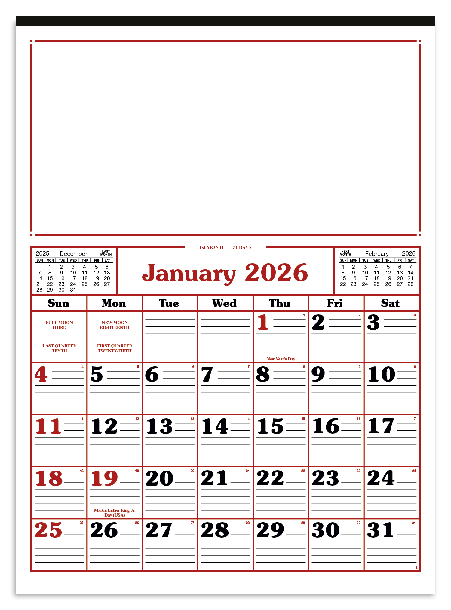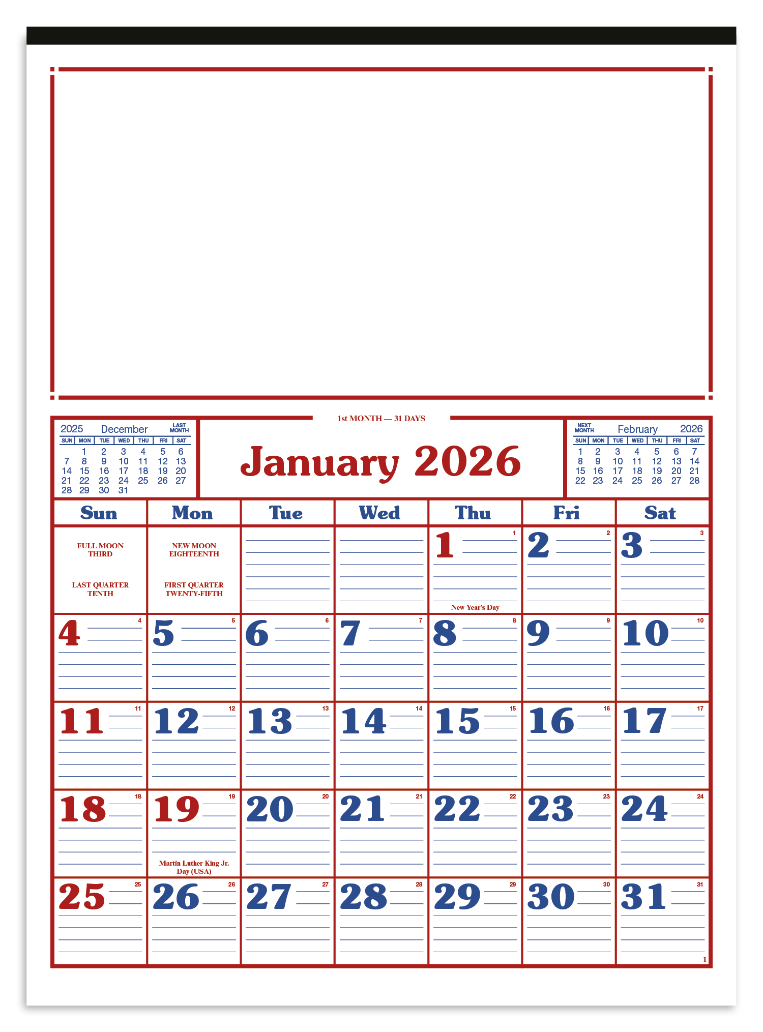 Keep track of the date at a glance with this largeformat 12sheet commercial calendar Lined date blocks make it easy to keep track of dates and stay on top of your schedule The SFI label means that materials used for this product have been responsibly sourced