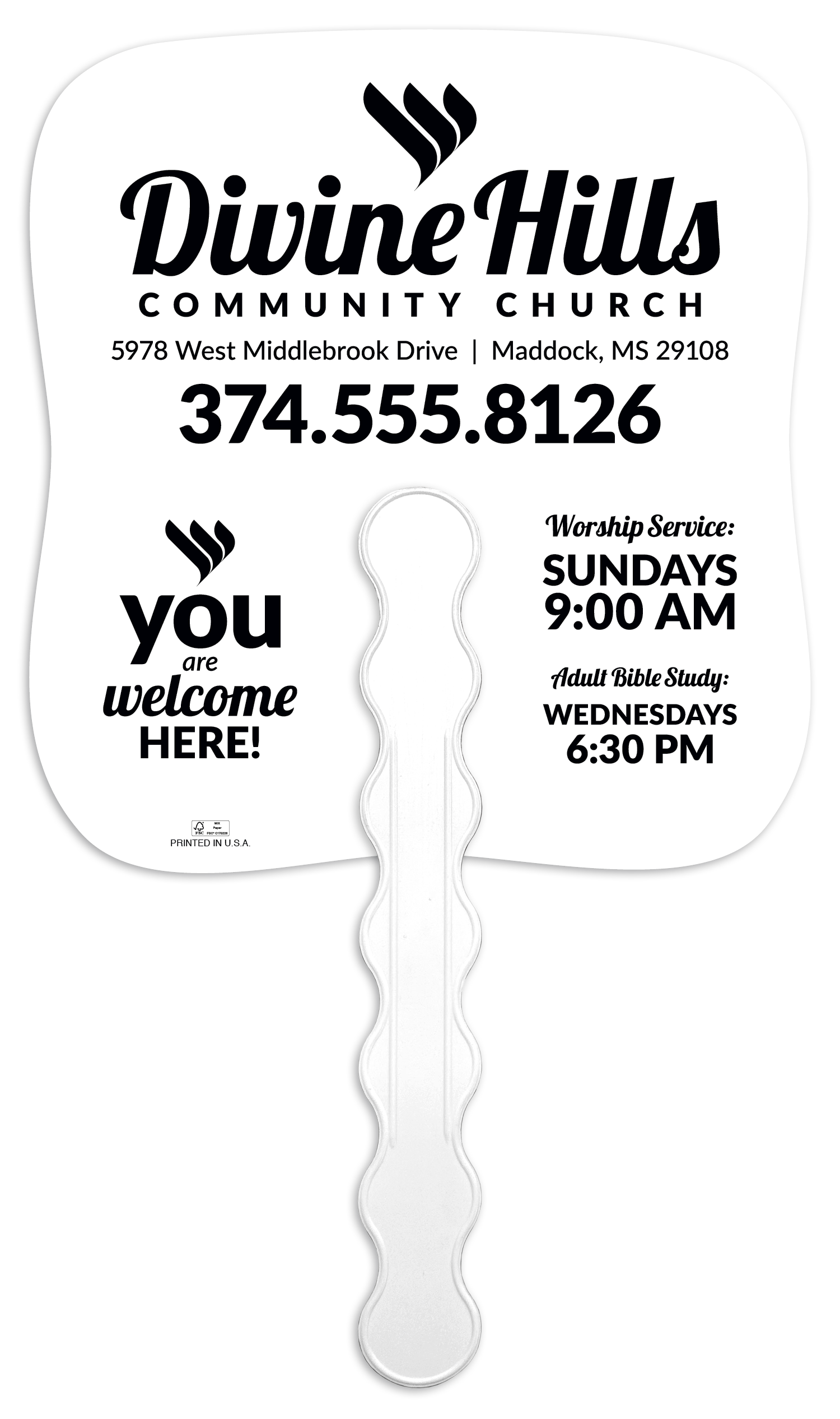 Stay cool and spread your message with this beautifully designed handheld paper fan featuring an uplifting image on the front and your imprint on the back Perfect for so many occasions it combines practicality with a meaningful message adding elegance to your event while keeping attendees feeling refreshed The FSC label means that the materials used for this product come from wellmanaged FSCcertified forests and other controlled sources