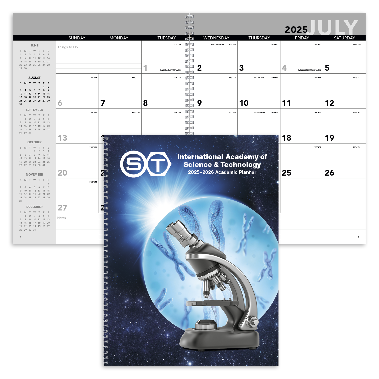 A thoughtful gift for students and educators this practical planner follows the school year with 14 months from July through August of the following year It lies flat thanks to twinloop binding and large daily memo blocks provide plenty of room for keeping track of assignments tasks and appointments This planner utilized our 8153 stock calendar pulled from inventory with a full color custom cover The SFI label means that materials used for this product have been responsibly sourced
