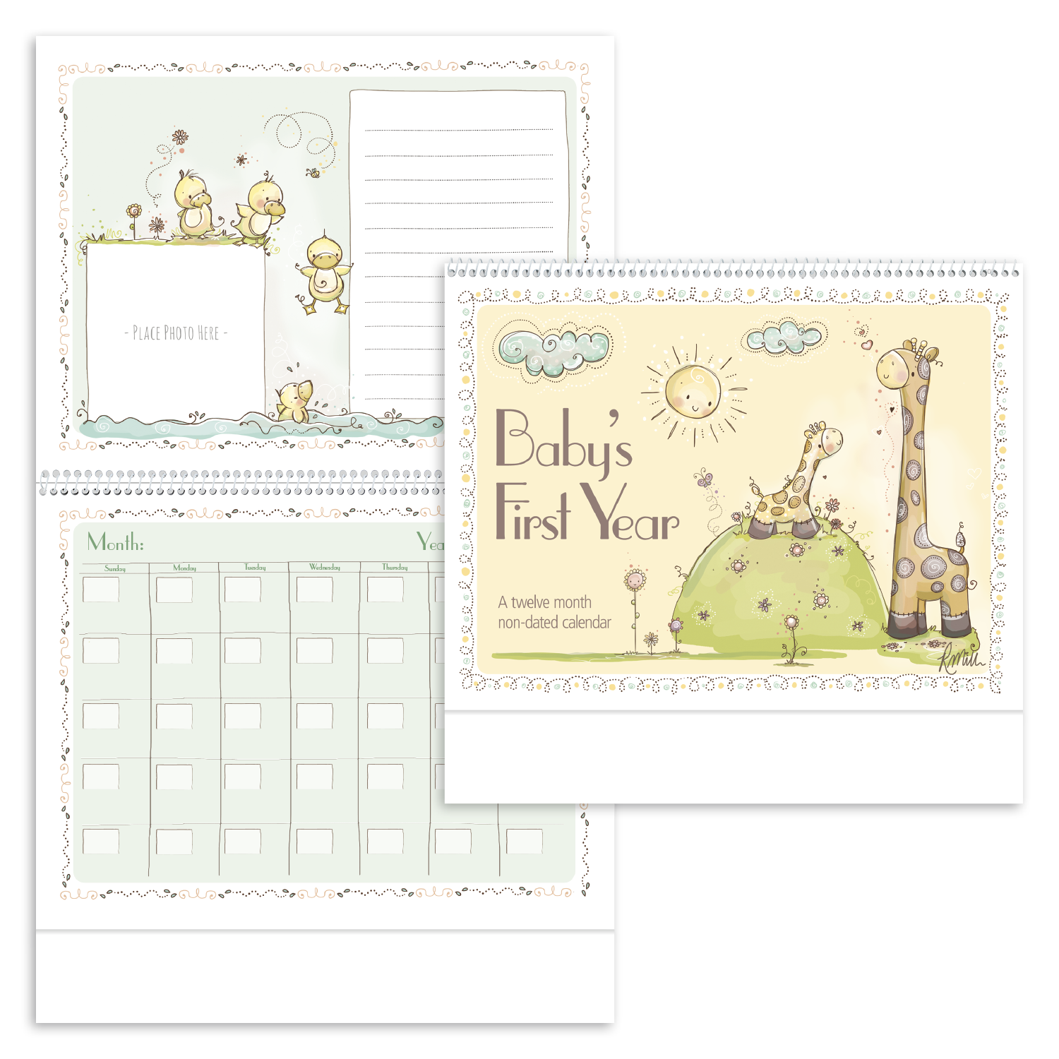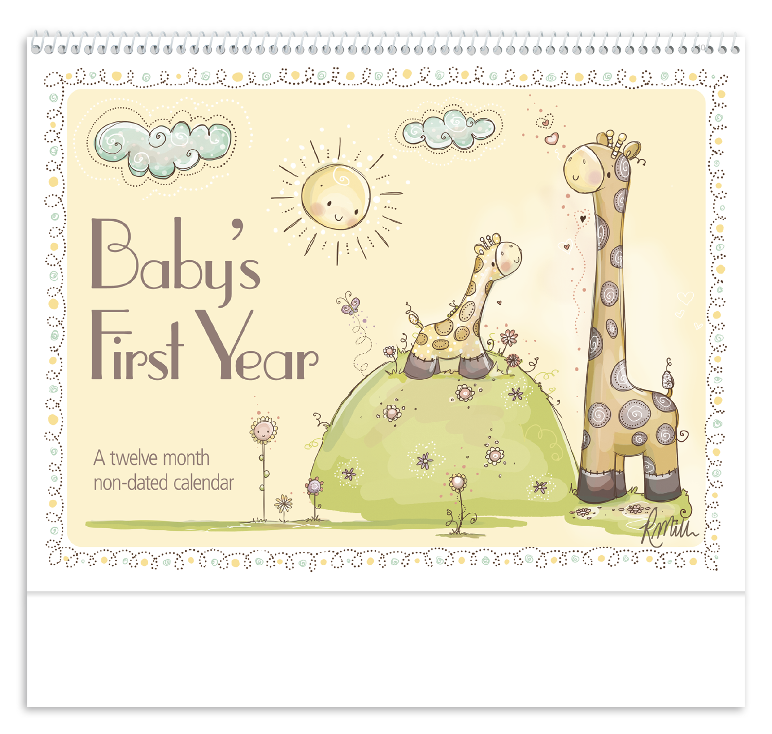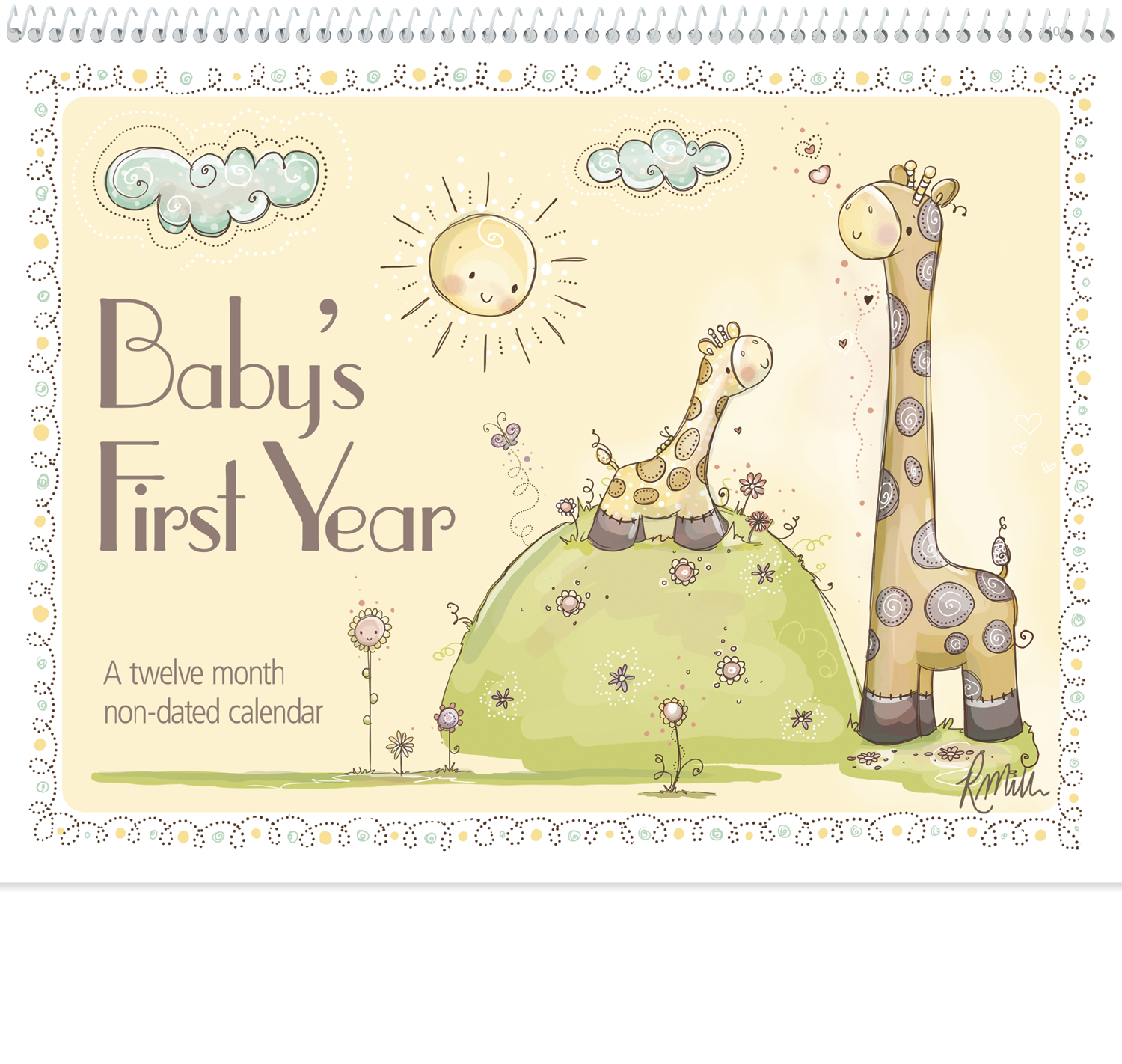 Create a keepsake of babys first year with this nondated calendar Adorable artwork by Rachelle Anne Miller is featured