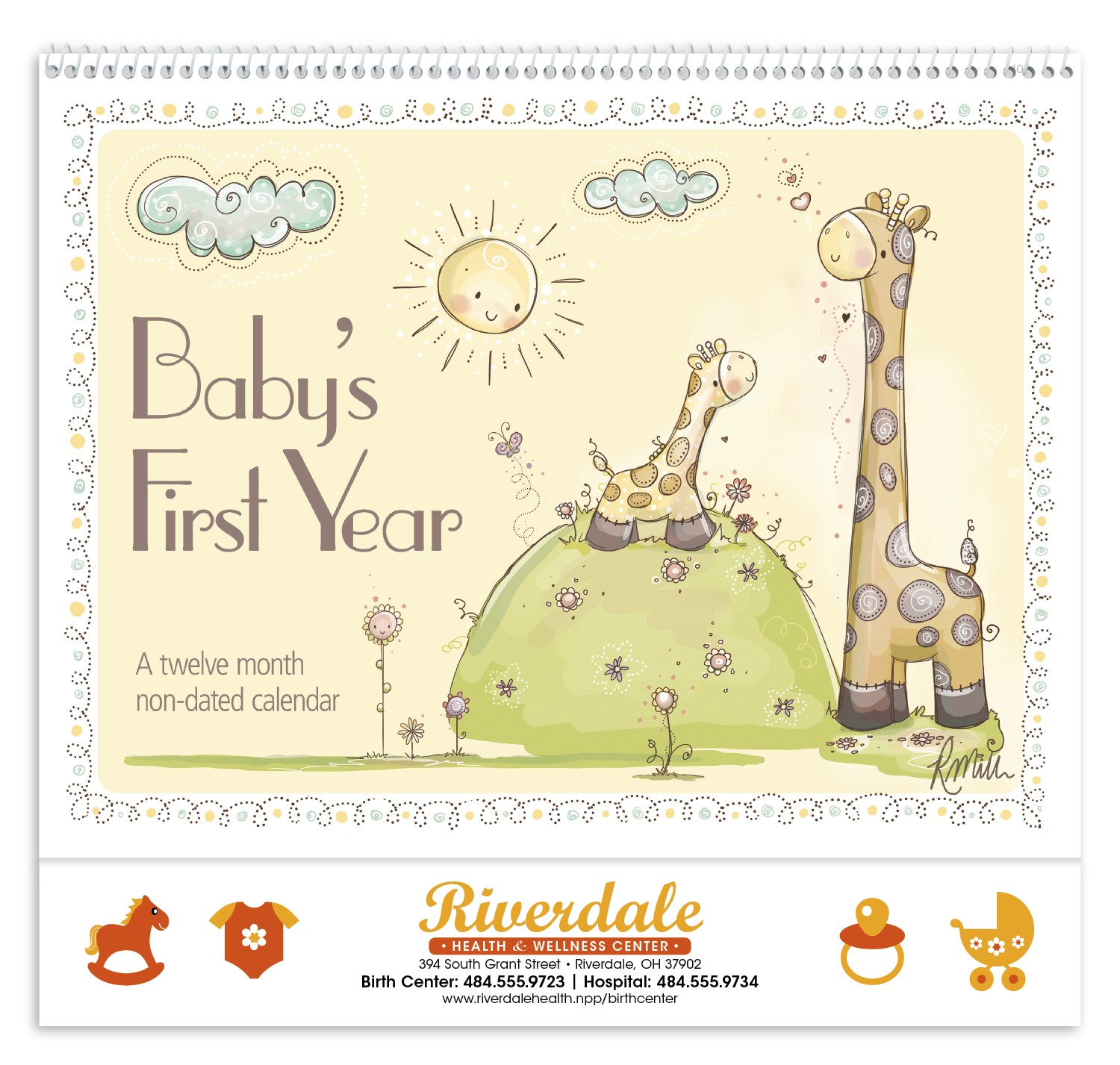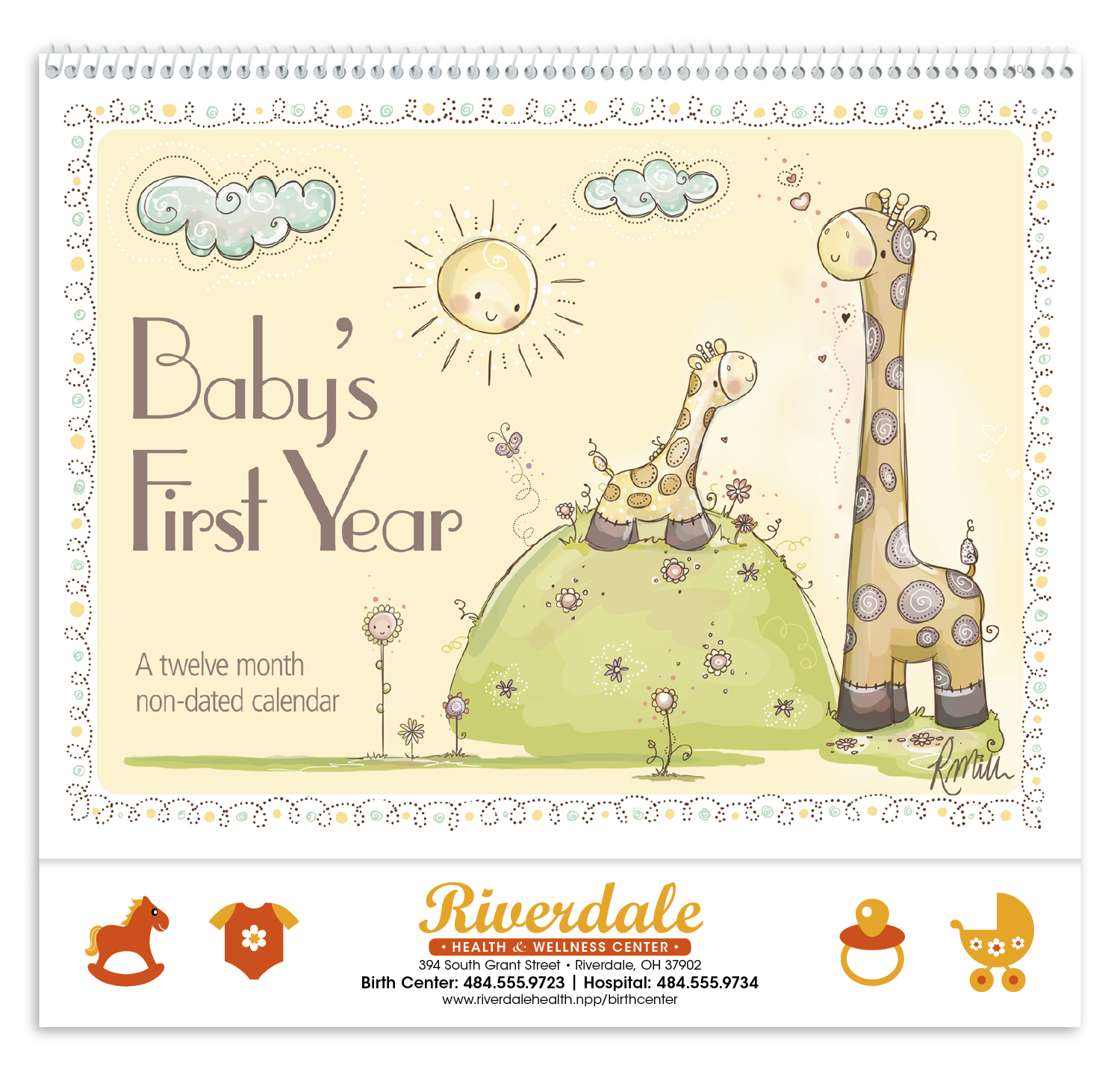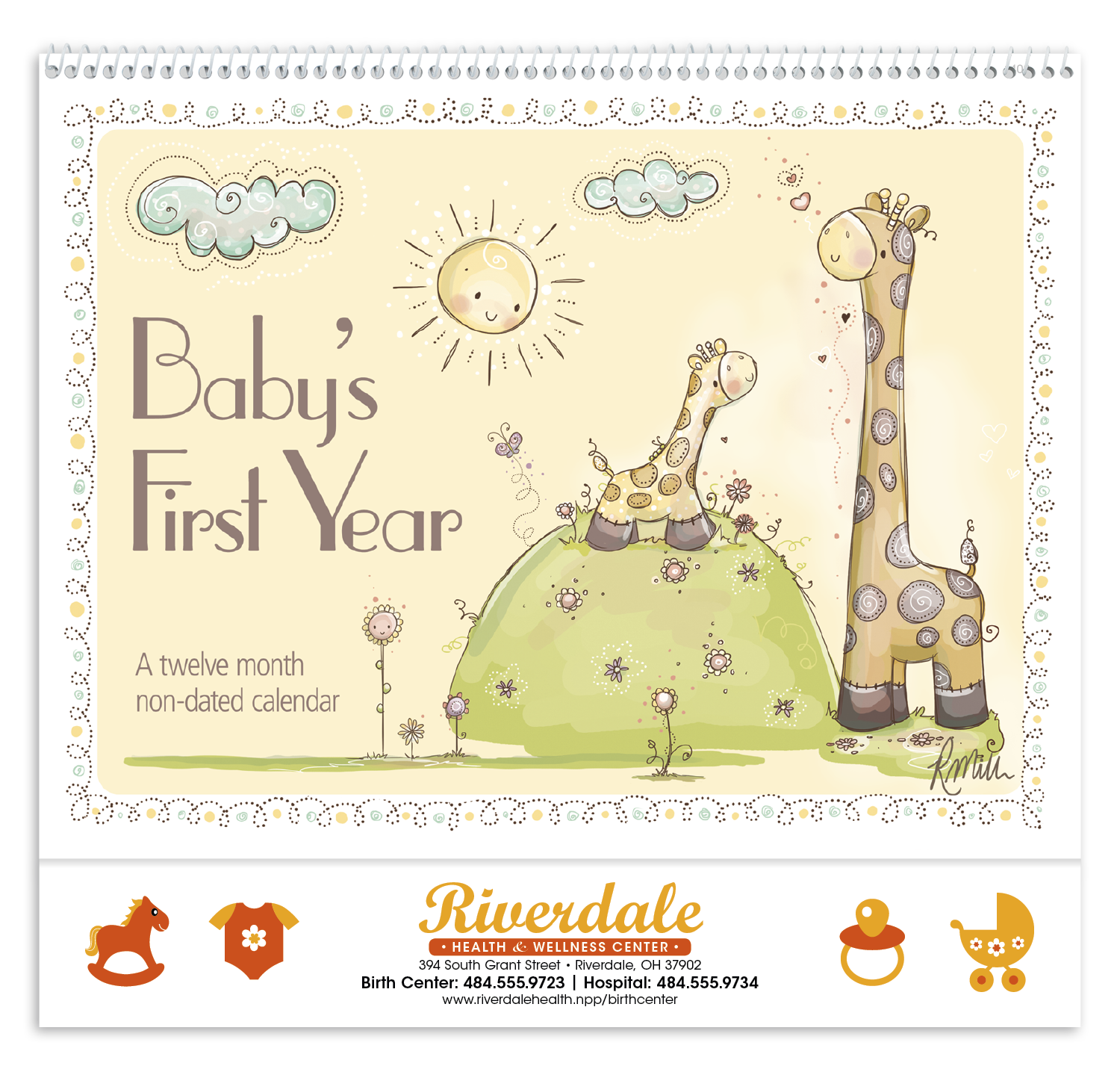 Create a keepsake of babys first year with this nondated calendar Adorable artwork by Rachelle Anne Miller is featured